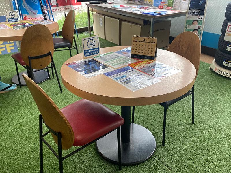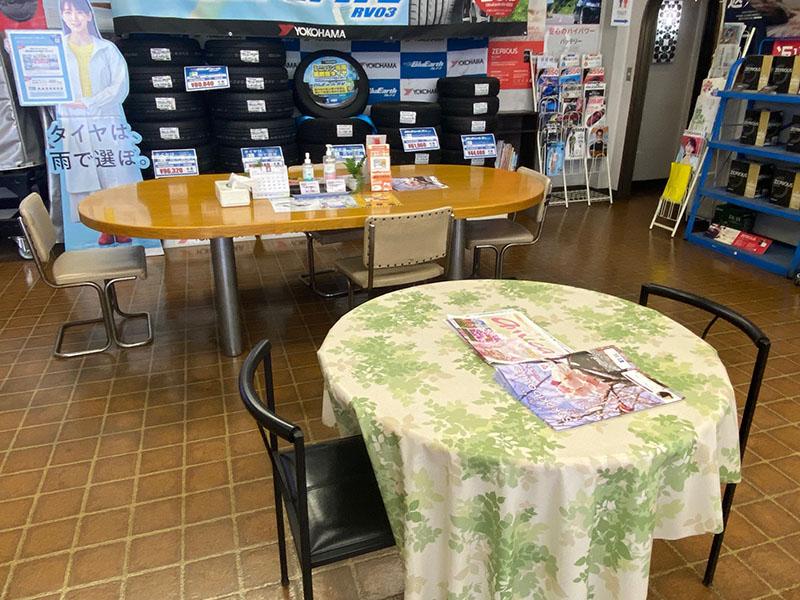 光の差し込む明るい店内で、車検・お車のご相談をお伺いいたします。